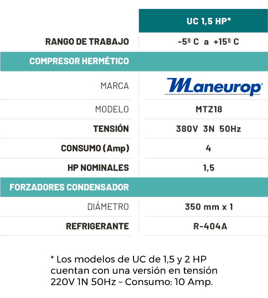 La linea de evaporadores cúbicos son ideales para su uso en cámaras frigoríficas de cualquier tamaño y requerimiento. Con un rango de potencias de 1,5 HP a 2,5 HP y separación de aletas de 4.5mm, estos equipos son aptos para alta y media temperatura. El panel aletado esta construido en caño de cobre de 1/2″ y aletas de aluminio con autoseparación y tratamiento Bluefin que le otorgan un excelente rendimiento y gran resistencia a la corrosión. Su gabinete esta realizado completamente en chapa de aluminio 5052 que garantizan elevada resistencia mecánica y a la corrosión y un acabado liso que cumple con las mas exigentes normas alimentarias. La carrocería se encuentra revestida con film de protección que la protege de eventuales rasguños durante el transporte, obra y puesta en marcha. Los equipos se pueden entregar con descongelamiento por aire o mediante resistencias eléctricas.